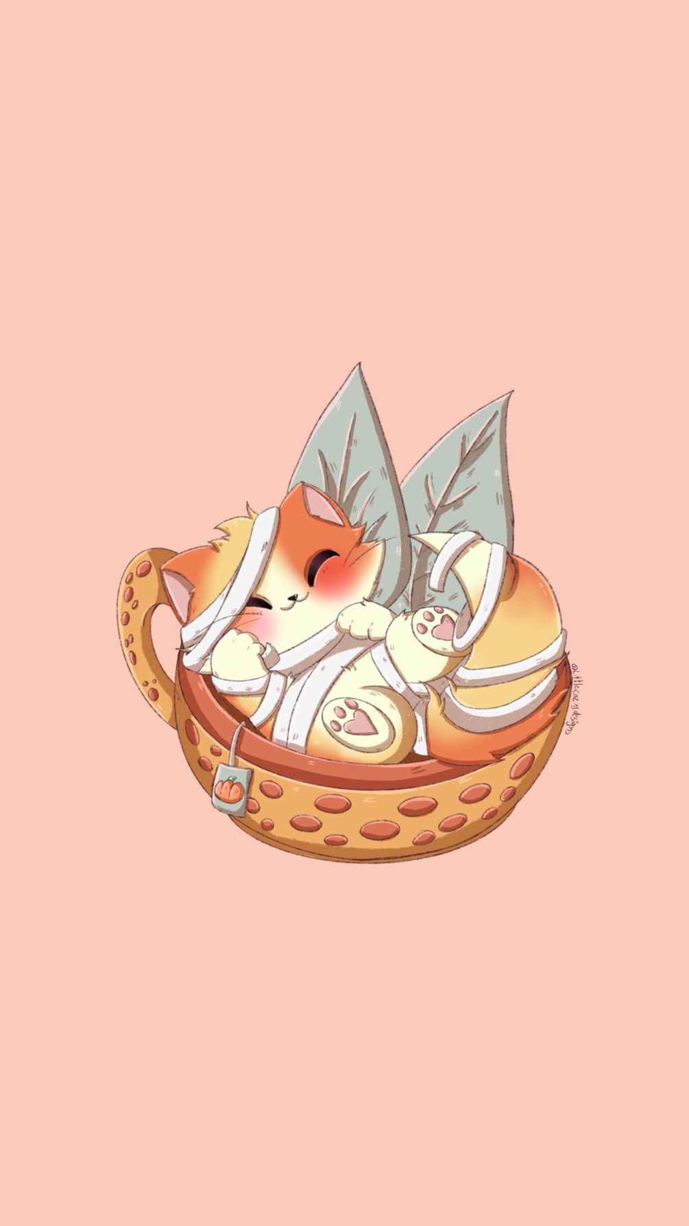 Cute Cat in Mug Halloween themed Desktop and Phone Wallpaper